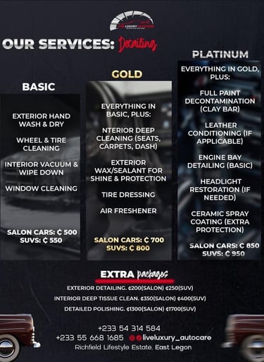 Explore our luxury car detailing services tailored to meet your unique needs in Accra.